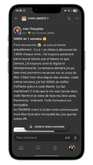 Et sur la communauté Code Liberté, on réponds à toutes vos questions, de manière approfondie, pour que vous ne restiez jamais bloqué et que vous progressiez rapidement.