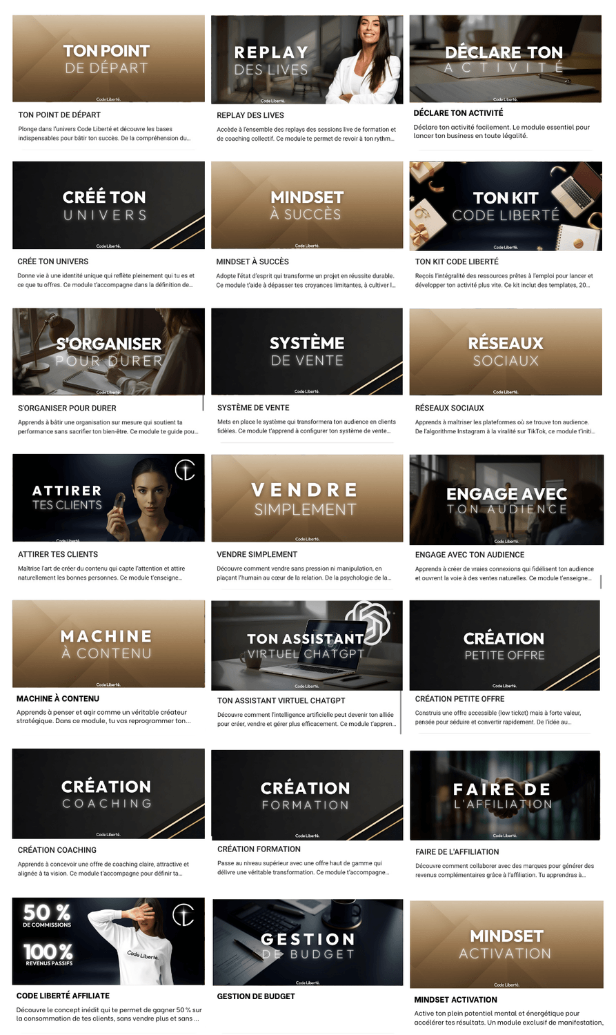 Ce n'est pas un simple accompagnement, mais c'est toute une validation 360° auxquelles tu auras accès quand tu rejoins Code Liberté.