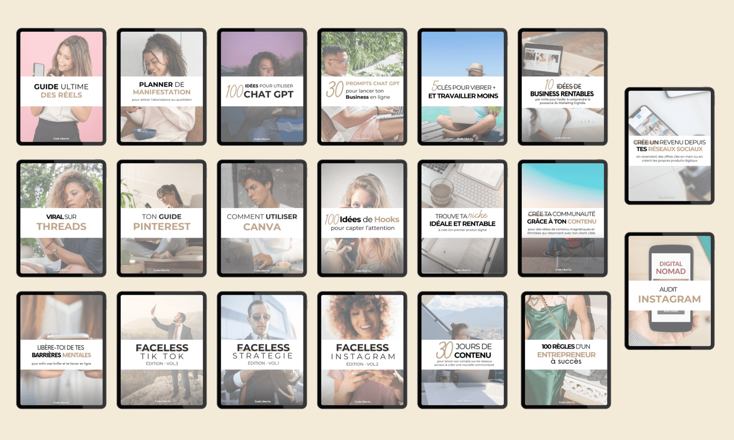 À l'intérieur de Code Liberté : tu auras accès à 20 produits PLR à vendre qui sont créer pour toi et tes clients, tu peux les revendre à des prix très attractifs allant de 47 € à 297€ pour générer tes premiers revenus passifs.